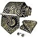 🎁【PURCHASE CONTAINS】Silk Shiny Gold and Black Paisley Tie+Pocket Square+Cufflinks+Silver Tie Clip+Gift Box.It's Proper gift for Father's Day,Anniversary,birthday,Christmas Day,Valentine's Day,Thanksgiving Day ect