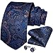 🎁【CLASSIC SIZE】Tie size:59x 3.15 inches, Pocket Square size: 9 x 9 inches,Cufflink Diameter:0.55 inches.Exquisite men's paisley tie set for a variety of dress shirts and suit tuxedo.