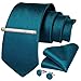 🎁【PURCHASE CONTAINS】Silk Solid Dark Teal Necktie + Woven Pocket Square + Cufflinks + Silver Tie Clip+ Gift box.It's Proper gift for Father's Day,Christmas Day,Valentine's Day,Thanksgiving Day,Anniversary,birthday ect