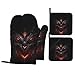 Multifunctional Heat Protection Set Fire Monsters This oven mitts and pot holders sets include not only 2 heat-resistant oven mitts, but also 2 pot holder mat (1 with and 1 without pockets) to provide total heat protection for your kitchen.Designed to fit the hand and allow for flexible hand movement.