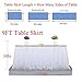 White table skirt size: 9FT White tulle table skirt refers to the length of the table skirt, not the table. 9ft (L108in×H30in) table skirt: 1.can covers front and two sides of a 4ft rectangle table 2.covers front and one side of a 6ft rectangle table 3.only covers front of an 8ft rectangle table.Please measure your table size to decide which size you need and carefully look Left side size detail image, before you buy it.