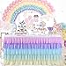Rainbow tablecloth for unicorn birthday party: Tutu table skirt is good for family dinners or outdoor unicorn party decorations. Especially suitable for unicorn party decoration, using rainbow colors of red yellow green blue purple, more atmosphere.