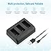 Convenient Charging Method: Common micro-USB input and the ability to charge with a USB wall charger, car charger, or external battery gives you more options than a standard battery charger, and Charges 1, or 2 NP-FV70 batteries simultaneously and smart LED light turns to red when charging and green when complete. (Adapters and Power bank sold Separately)