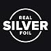 Simple silver foil font design on 100 lb premium uncoated white card stock.
