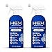 Shoe spray controls odors with a convenient two-sided spray bottle that has a clean, refreshing scent