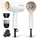 【Powerful Blowing】 - Our womens hair dryer has 2 levels of wind speed, 3 levels of temperature, 1 key cold air, a finger at ease to switch, to meet most of the hair blowing needs, up to 134 °F constant temperature, 1875W 20000RPM high power air supply, wind speed up to 12M / S, 3 minutes fast hair drying.