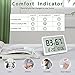 𝐅𝐚𝐜𝐞 𝐈𝐜𝐨𝐧 𝐂𝐨𝐦𝐟𝐨𝐫𝐭 𝐈𝐧𝐝𝐢𝐜𝐚𝐭𝐨𝐫 𝐃𝐢𝐬𝐩𝐥𝐚𝐲:DOOMAY digital thermometer for home features 3 different face icons(SAD/SMILE/EXPRESSIONLESS) to indicate air condition - DRY/ COMFORT/WET, Intelligent function allows you to adjust humidifiers, or dehumidifiers to help your body keep at a comfortable status in time.Temperature range 14.2°F~140°F (-9.9°C~60°C) and humidity range 10%~99% RH, accuracy is ±1°C & ±5%RH.