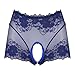 Women See-through Lace Patchwork Panties Mid Waist Crotchless Briefs Elastic Waistband Underwear