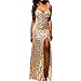 Full length sexy gold long evening dress,Hang to dry.The dress is lightweight,inside lining is soft and comfortable.The outer layer fabric is sequin, please be careful when you wear it to avoid scratching.