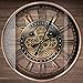 🧭【Unique Design, Only For Your Home】 Round solid Wood frame and classic retro skeleton with real mechanical moving gears in the central, the wooden frame is handcraft, showing unique attractive wood grain color and small natural knots; fake rust treatment marks on the skeleton for vintage and industrial effect; stronger tempered glass resists any breakage and keeps safety whenever; The design is very different from other clocks, just to break the ordinary, only for your home.