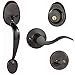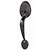 MATERIAL: BRASS CYLINDER, with 3 Keys. STRIKE PLATE: 2-1/4" Full Lip Square Corner. Durable & Portable Oil Rubbed Bronze Finish handle set which Fits 1 3/8-Inch-1 3/4-Inch doors. Main handle mounting hole center 8 1/2-Inch.