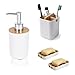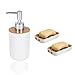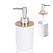 🌈 【TOUGH BAMBOO MATERIAL】 Every single part of our Soap Dispenser & Toothbrush holder is made entirely from ultra-tough natural Bamboo, Starch and Talc to give you long-lasting durability.