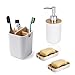 。◕‿◕。 【A GREAT GIFT IDEA】: 1 × toothbrush holder+1 × Makeup Brush Razor Holder+1 × Soap Dispenser+2 × Soap Dish, Whether you're buying our draining soap dish for yourself or as a gift for family or friends, its unique and elegant style means it will look good wherever you put it, regardless of the decor.