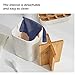 Three large compartments fit most sizes of toothbrushes, toothpaste tubes, flossers, razors and more