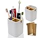 🌿【PREMIUM MATERIAL】 Every single part of our toothbrush holder is made entirely from ultra-tough natural Bamboo, Starch and Talc to give you long-lasting durability. The holder body is square shape,not easy to tip over.At the same tiem,It can be easily cleaned with soap and water.Ideal for compact spaces on bathroom counters,in cabinets,or under the sink.