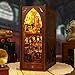 EXQUISITE BOOK NOOK KIT: 3D miniature book nook kit combines a 3D diorama, book corner and decoration in one. The design of dollhouse kit is inspired by classical art and culture, taking you to experience the charm of the library. The hollow design of the upper and lower floors not only enhances the sense of detail, but also allows light to penetrate the interior better.