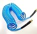 With 1/4" MNPT Swivel Ends And Bend Restrictor Fittings. Polyurethane material provides extreme flexibility without the hassle of twisting and kinking during use, or when stored. Polyurethane’s beneficial elasticity also allows the spiral air hose to return to resting form, even after continued use. Additionally, polyurethane material is extremely oil resistant.