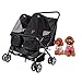 Safe & Easy to Turn | The front wheels can be rotated 360° without dead ends, easily slide over flat or rugged terrain.and rear wheel brake system for stay and stop easily.Each cage features safety belt leash clips to keep your pet securely in the stroller at all times