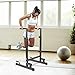 【Specification】( 39.37"- 51.18" ) H x 27.55" L x 28.74" W. Weight Capacity: 500lbs. Material:Heavy duty steel.Package Include:dip station parts,screw package and 1 Instruction.Assemble in 10mins.