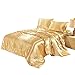 LUXURY SILK LIKE IMITATED FABRIC: Artificial silk combine the advantages of silk and artificial materials, full of luxury texture. The appearance of the fabric is softer and elegant, like the luster of the pearl; Super smoothly, soft and comfortable, flexible.Texture is also relatively thin, feel crisp,Cool skin care in summer,Color is extra bright and gorgeous, it's best for you to decorate luxury and charming style bedroom in all season.