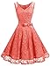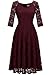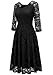 【Features】SIZE RUN SMALL,Vintage and elegant lace dress, V-neck, see-through shoulders, 3/4 sleeves, tea length dresses below knees, concealed zipper closure at back, A line swing dress make you more feminine