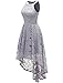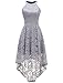 Deft design: high-low hemline, halter-neck, lace floral, back zipper.