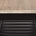 Stainless steel hardware, black legs and shelves, grey-washed wood top