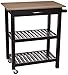 Kitchen island storage cart with two open slatted shelves and a pull-out drawer