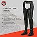 All Day Comfort: Our Leather Motorcycle Chaps come with an underlining layer for breathability and comfort in hot or cold weather so you can enjoy your ride without any worries.