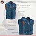 Multifeatured Denim Vest: The biker jean vest for men contains two concealed arsenal pockets made of special heavy-duty textile with built-in holsters and snaps closing, a single panel back, and four classic gunmetal snaps.