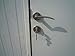 Door handle includes padlock eye to secure shed
