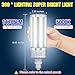 ✅DURABLE AND EASE OF USE:Slim and short body 50% smaller and 30% lighter than the equivalent Watts LED corn bulb.Instant-on,no warm-up,no buzz,no flicker.360 degree directional lighting,no dead angle,covering a larger area, the light is soft and not dazzling,illuminating every corner of the room, providing you with a very clear and bright space.Very suitable for residential ceiling fan lighting and commercial applications or any place where a lot of bright light is needed.