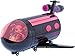 The scooter is trendy designed in pink and yellow with silvery accents.