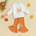 🎃【WHY BUT IT】: Finest Halloween baby girl outfit. Funny little pumpkin print! Long sleeve, crew neck, bell bottom, pumpkin color pants. Become a cute girl on Halloween. Baby girl fall clothes perfect baby girl Halloween outfit fall sweatshirt + pants.