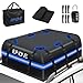 100% Waterproof and Durable Material: Made of high density 720D PVC fabric with high frequency voltage technology, this rooftop cargo bag is 100% weatherproof and strong enough to protect your luggage on the top of vehicles from rain, snow, wind and sun while long time driving, and the white reflective trip on the cargo bag make it safer to drive overnight