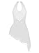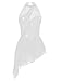 The top features with sleeveless and halter neck with buckle, mesh patchwork style, letter “CHEERS†print in the front, backless design