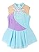 Kids Girls Long Sleeve Stand Collar Glitter Rhinestone Decorated Patchwork Style Hollow Back Skating Dance Dress