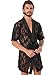Men See-Through Lace Night-Robe Short Sleeve Bathrobe Sissy Nightwear Sleepwear with T-back Belt