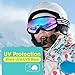 UV Protection and Crisp Vision - This kids ski goggles feature a Spherical panoramic lens which provide a wide and clear vision, your kids can have a beautiful snow scene without blocking view. The FULL REVO coating lens makes it much more cool and easy to recognize in the snow field.