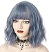 ♥♥[100% Natural Synthetic Fiber] Blue wig with Bangs is heat-resistant. High quality 100% synthetic fiber material makes the wig very light, soft and silky, making it very comfortable and natural to wear. Our wigs are tangle-free, lightweight and easy to wear, save time, and are fashionable.