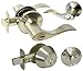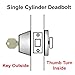Door lever is reversible for left or right hand. Single cylinder deadbolt operates with a key on the exterior and a thumb turn on the interior. High security 1" throw on deadbolt.