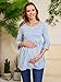 【Fashion Design 】A heathered, striped maternity top featuring 3/4 sleeves with a pleated accent and a rounded neckline.