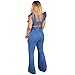 Casual Denim Jumpsuit, Relaxed Fit, Denim Fared Bell Bottoms, Flounce Sleeve, Ruffled Hem, Zip Up Tops, Wide Leg Pants with Tie, Full Length Pant, Solid Color,