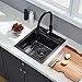 【GUNMETAL BLACK FINISH】GUNMETAL BLACK COLORED FINISH applies an outer vaporized Titanium alloy protective layer attached to the sink surface using innovative NANO PVD technology, which improves durability and corrosion resistance,scratch-resistance of the sink, and the sink will never rust or stain. and this sandblasted MATTE BLACK finish looks cool. There is additional transparent DRAINAGE COATING attached to the outermost surface of the sink, which greatly improves water drainage, and prevents water spots and fingerprints.