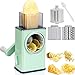 🍄Free Your Hands with Our Rotary Cheese Grater: Your Safety is our priority, the potato grater takes care of your hands by keeping them away from the blades in using thanks to the food pusher. No electrical needed. In addition, special designed brush for safety cleaning. 3 blades are top rack dishwasher safe. 🍄 Customers come first: We provide 365 days warranty on transparent barrel and handle, other parts are guaranteed for 30 days.