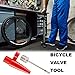 🏍What You Will Get: This bike value adaptor kit includes 2 pieces 90 degree brass elbow extender valve, 2 pieces Inflatable needles, 6 pieces valve adapter(3 models), 1 piece flexible extension hose, 2 pieces red tire valve caps. All are stored in a transparent storage box for your convenience and storage.