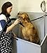 Two-piece, removable floor grate, can be adjusted to higher and lower levels to accommodate both large and small dogs. Door is easy to open and securely locks closed, features watertight seals to keep water inside the tub