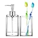 LOVE THE HIGH-END DESIGN! Add a jewel like appearance to your countertop, with this toothbrush & soap holder bathroom set. Its modern square shape & classic clear design are timelessly stylish and it enables you to easily see what’s inside, avoiding needless frustration.