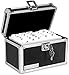 Reliable key lock of notecard box provides security on a desktop or hidden away