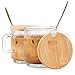 Comes with Lid and Spoon: The glass coffee mug with handle comes with a natural bamboo lid and a beautiful spoon, the bamboo lid keeps your liquid clean and warm for longer, and the spoon allows you to easily stir your hot drinks.